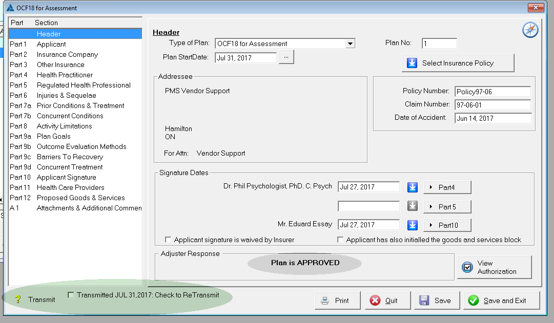A printed OCF18 showing the HCAI Reference number of the approval.