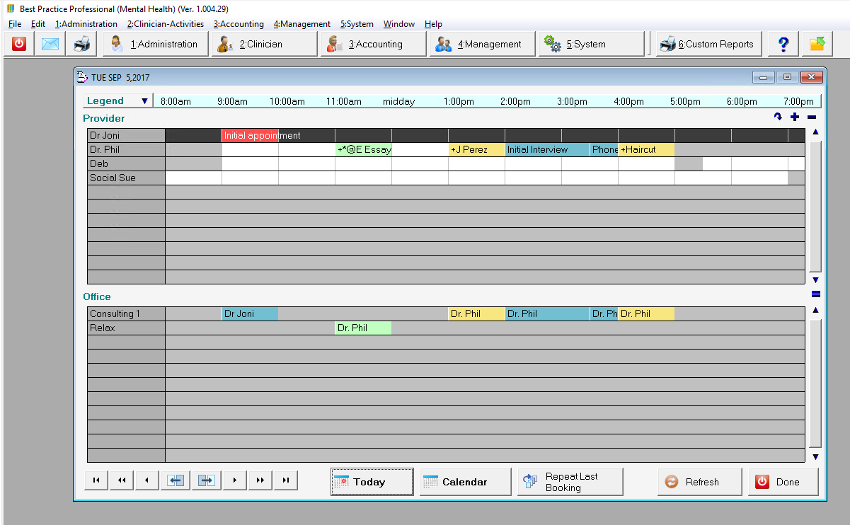 The Clinic Scheduler that Reception will likely keep open most of the time.